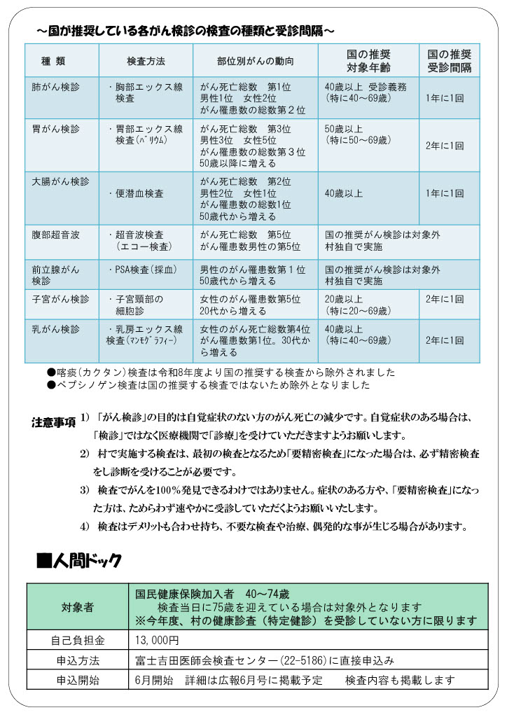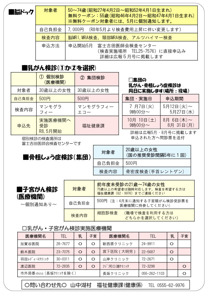 令和8年「元気いっぱい山中湖健康診査」の申し込みを開始しております。