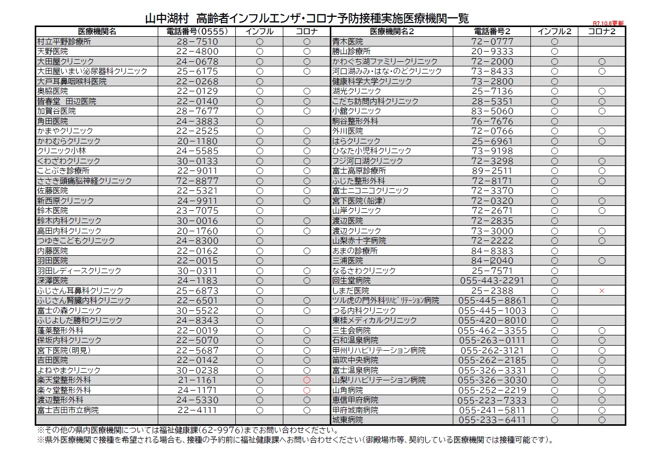 山梨県内の医療機関(御殿場市などの契約医療機関も可) |