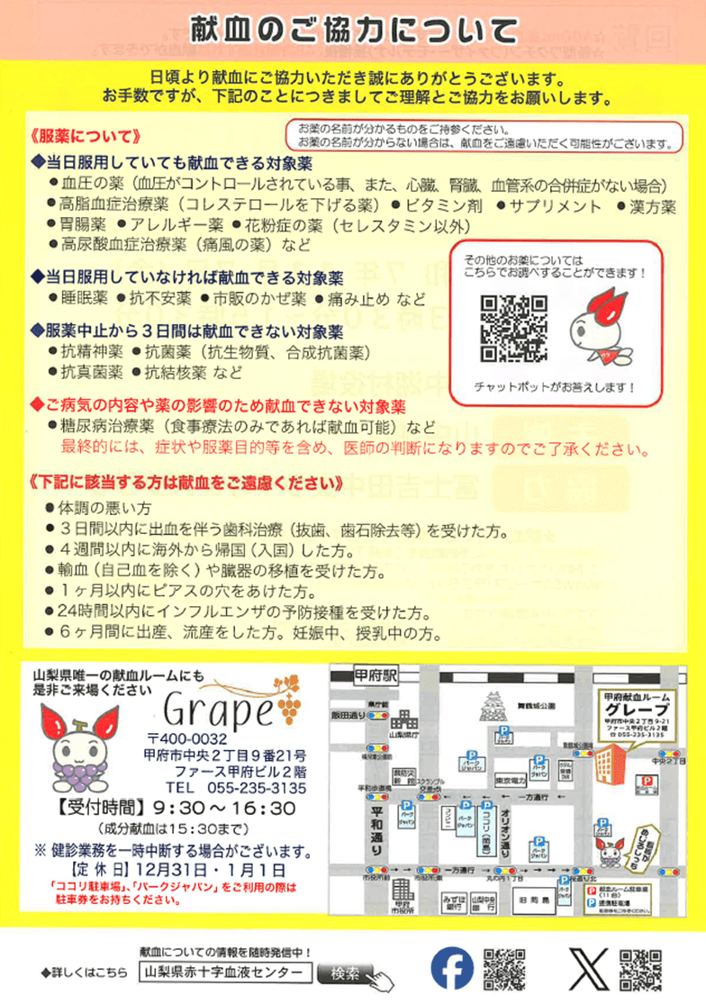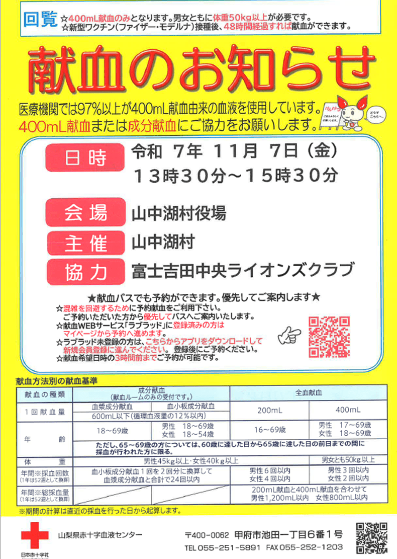 次のとおり献血を実施しますので、村民の皆さまをはじめ、